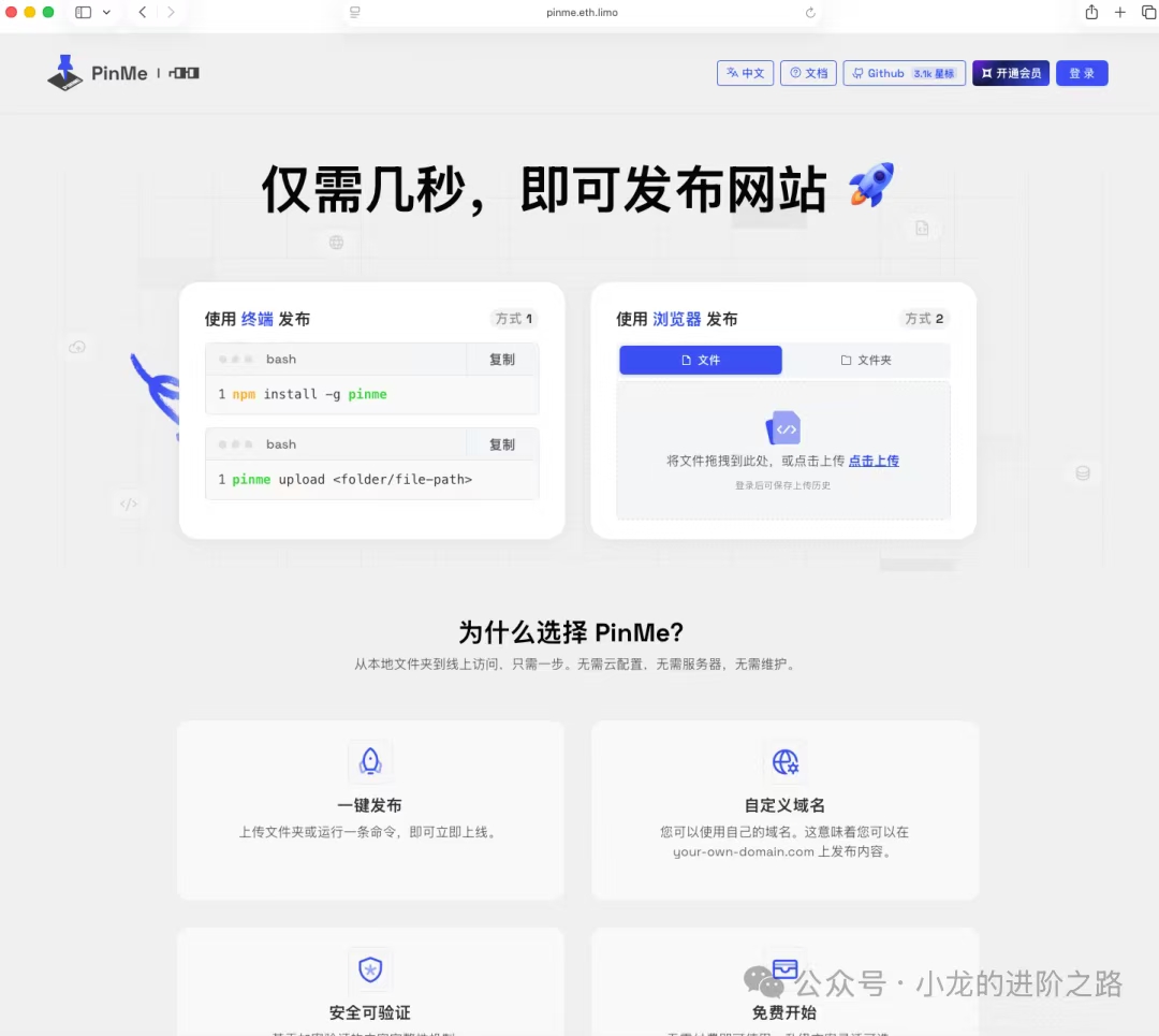 用 pinme:打开网页 → 上传文件 → 生成链接,10 秒搞定!