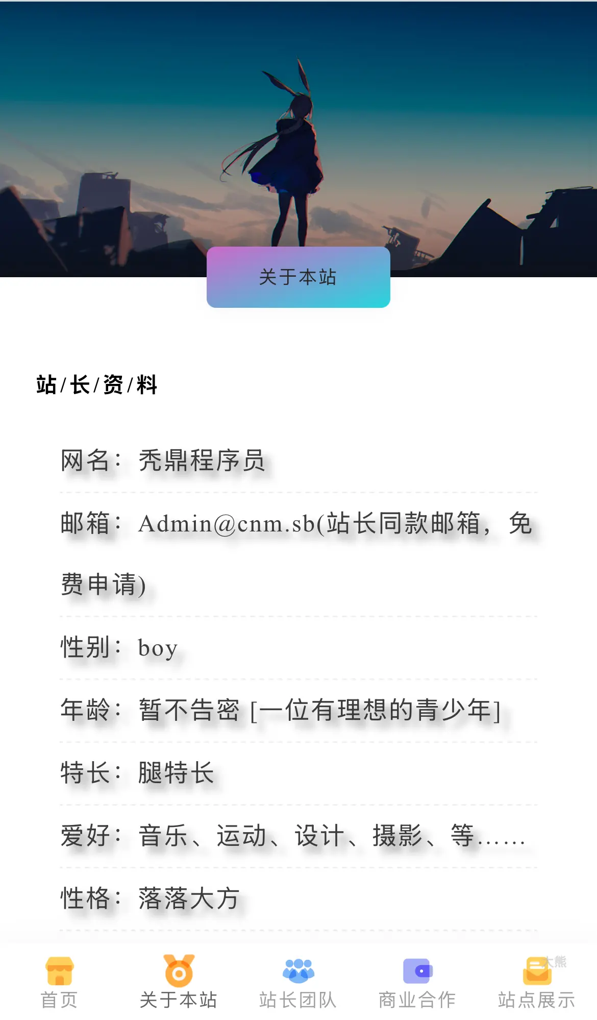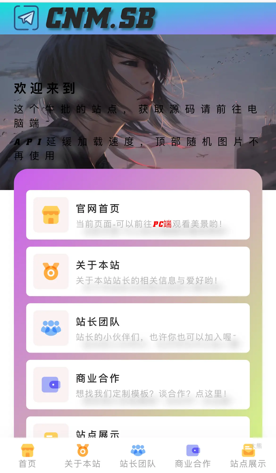 这个个人主页的源码现已完全开放,来自 cnm.sb 的一款高颜值单页官网,双端显示,欢迎下载使用,也支持按个人喜好自由修改。